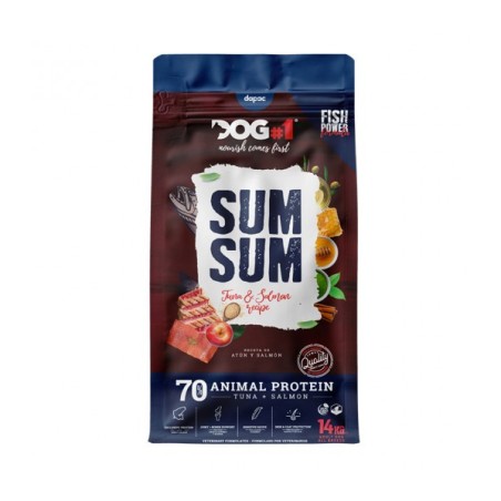 Dog#1 Sum Sum es un alimento para perros adultos con Atún y salmón, con protector para articulaciones, con pescado como primer y segundo ingrediente, sin Trigo ni maiz y con Omega 3 y 6.